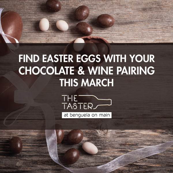 Join Benguela on Main at their Tasting Room and find Easter eggs with your chocolate and wine pairing during March. Each artisan chocolate is handmade by master chocolatier Jane Stuart. Here you will enjoy four incredible chocolates paired with award-winning wines by Benguela Cove Lagoon Wine Estate.