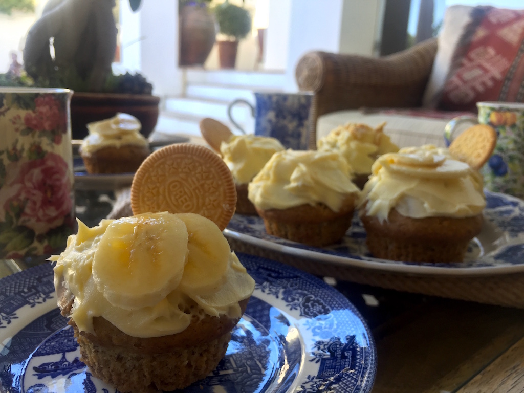 9. Once the cupcakes are 100% cooled, smear on some icing, top with one of the half Oreo biscuits, crushed Oreo or fresh sliced banana.
