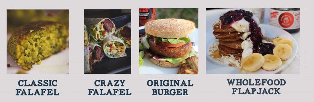 The falafel is made using activated chickpeas, and pure herbs and spices. Although they are healthy, they are also moreish. Prepare them at home, just add water and fry, and then gobble them up fresh out the pan. It’s that good. They’ve got two flavour variations: