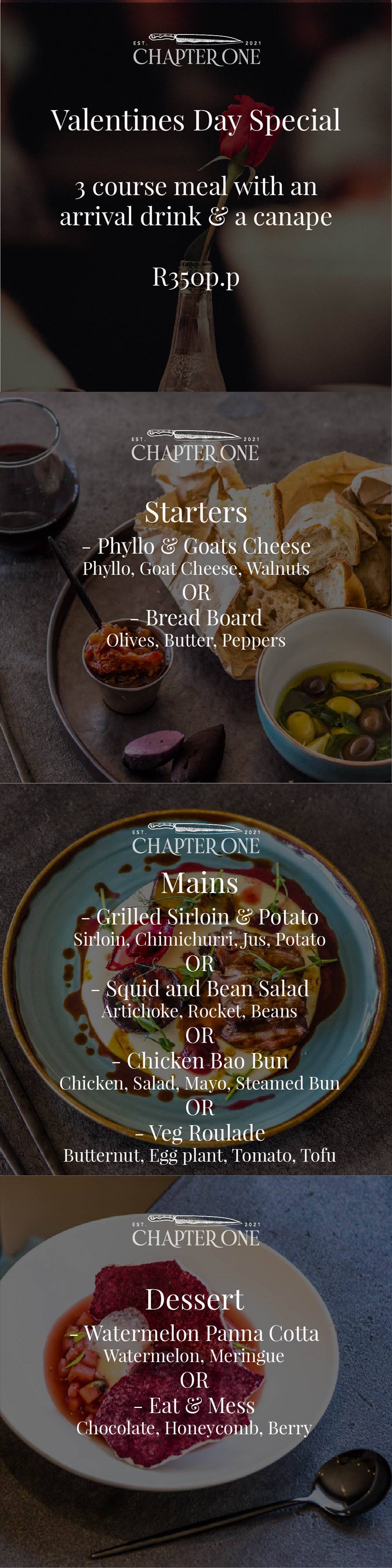 In celebration of Valentine’s Day, Chapter One will be offering all of the love birds a special menu.