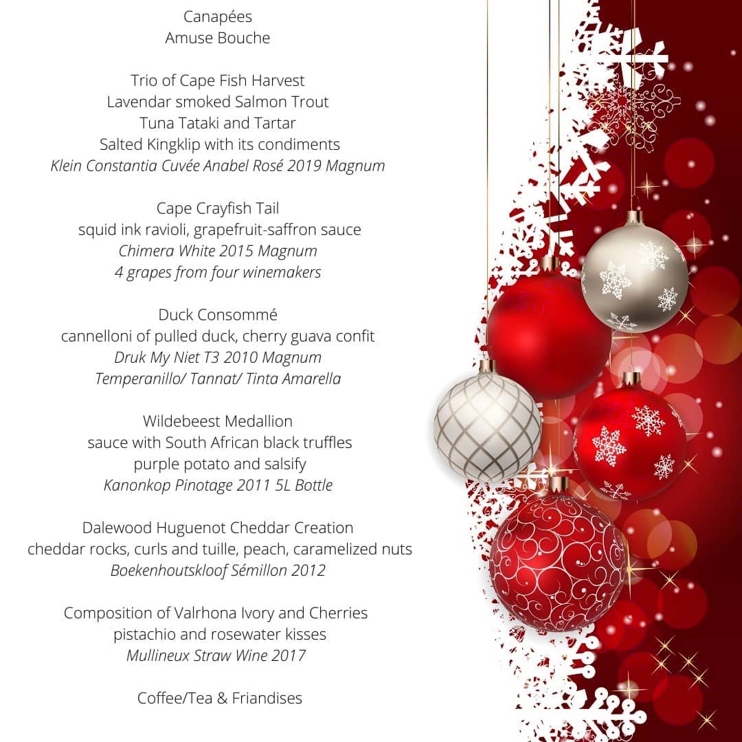 An incredible wine paired dinner menu is available for Christmas Eve.