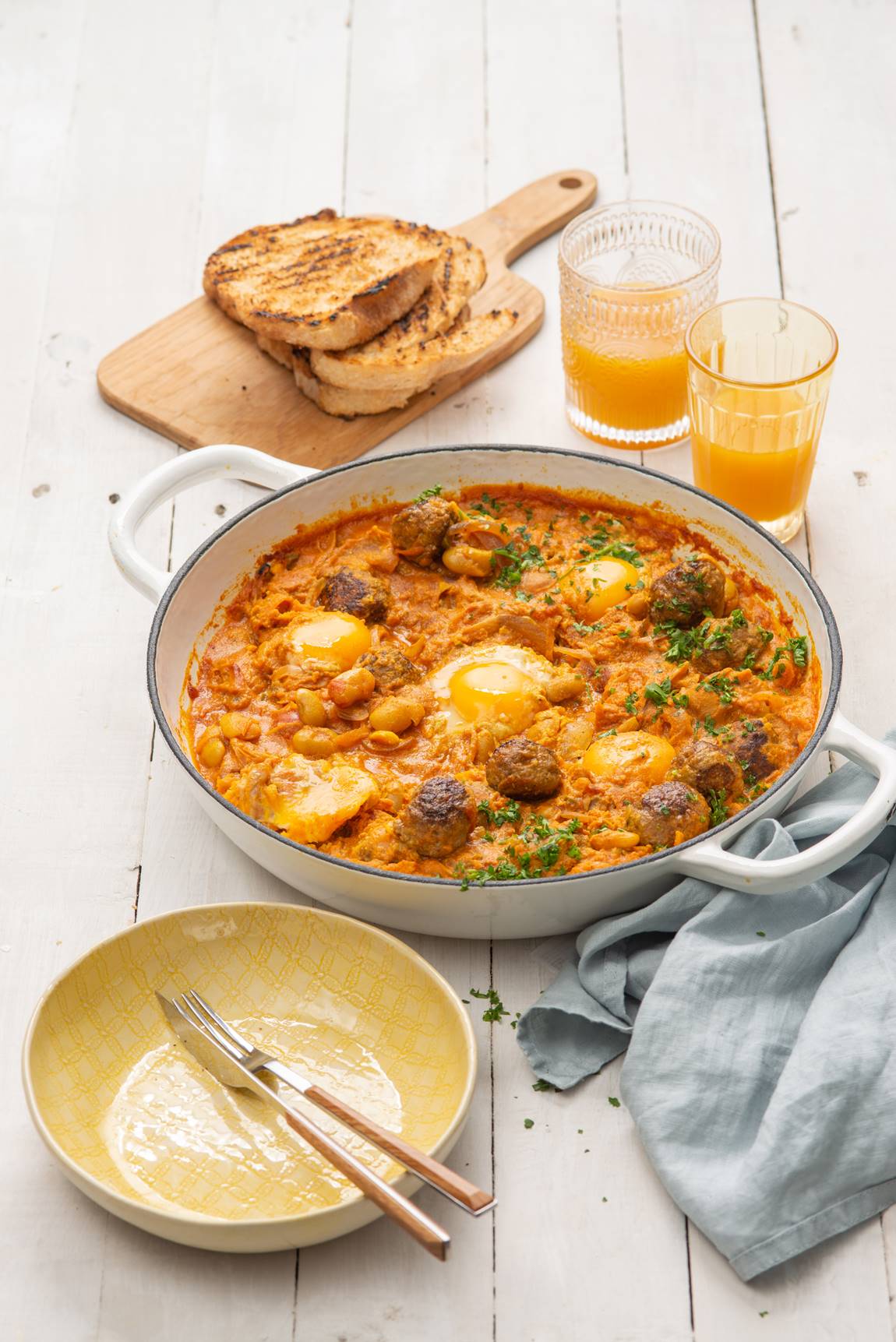 Boerewors, Butterbean and Chakalaka Breakfast Bake