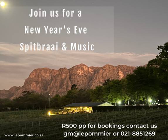Le Pommier Wine Estate is famous for making some of the best wines in South Africa. But it does not stop there as they have a fantastic food offering on the wine estate and are hosting events to showcase these throughout the entire year…this is no different on New Year’s Eve.