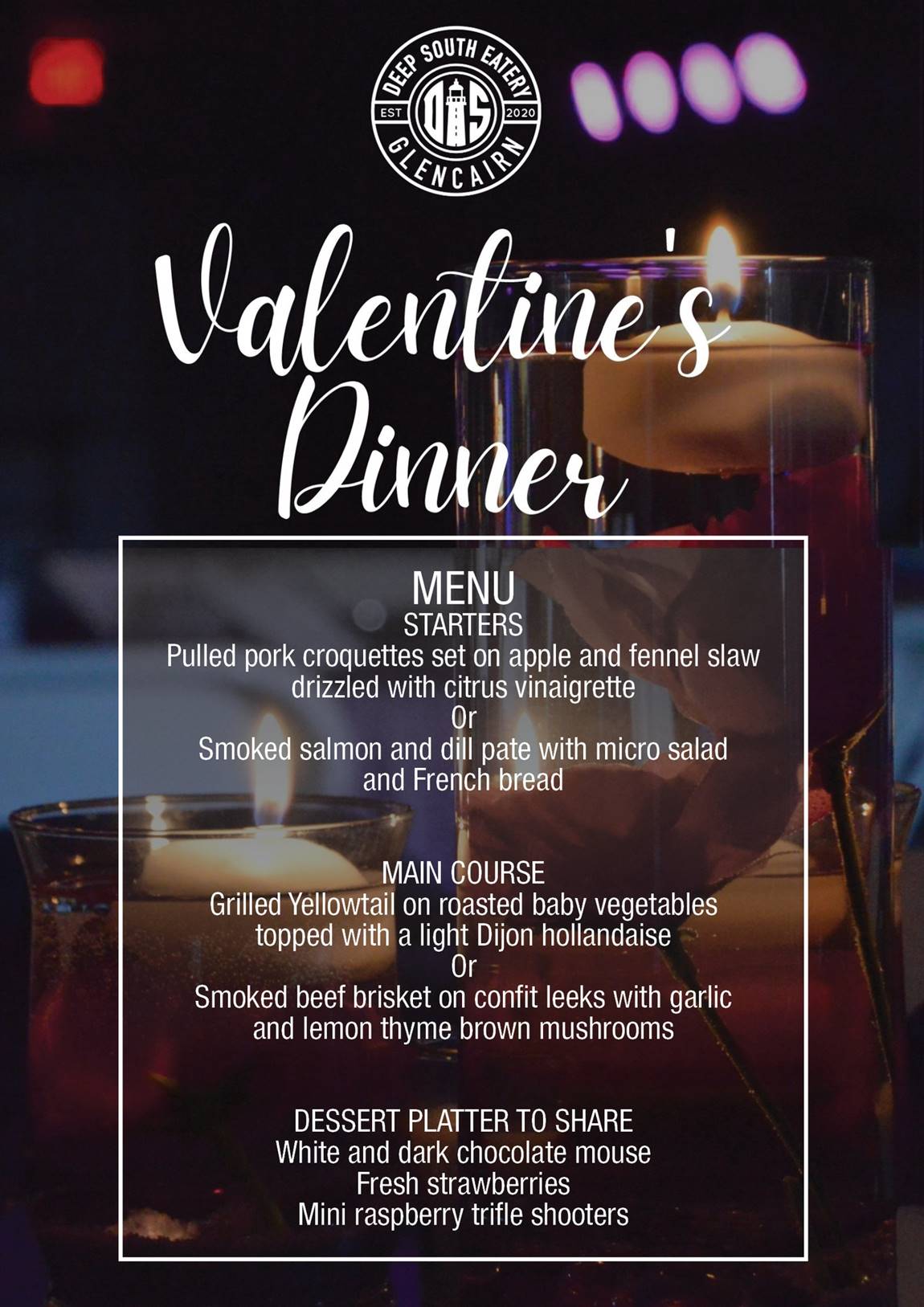 Spoil that someone special with a Valentine’s Dinner at Deep South Eatery!