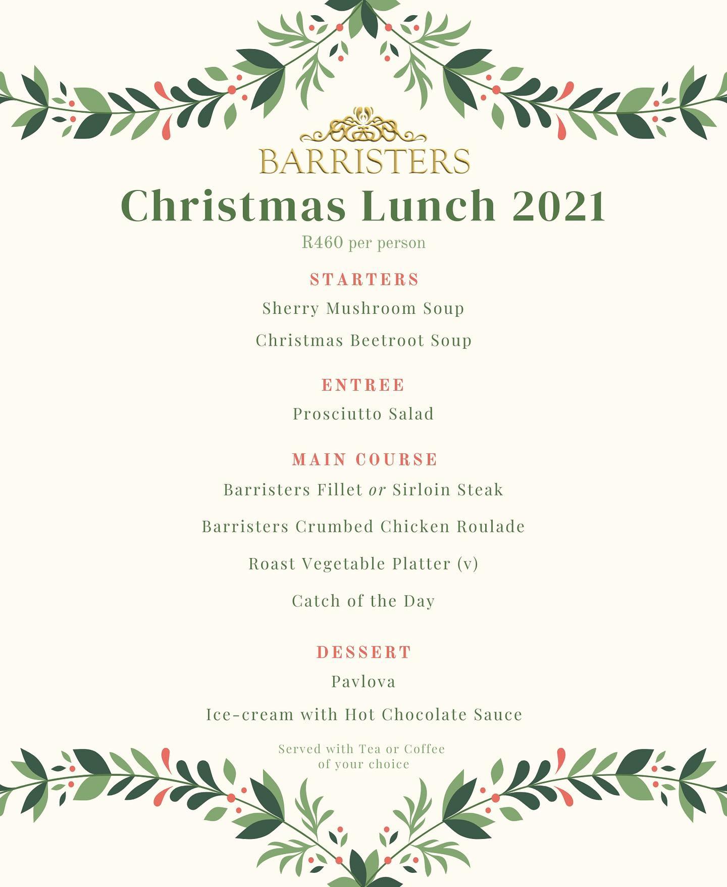 Email info@barristersgrill.co.za to secure your booking!