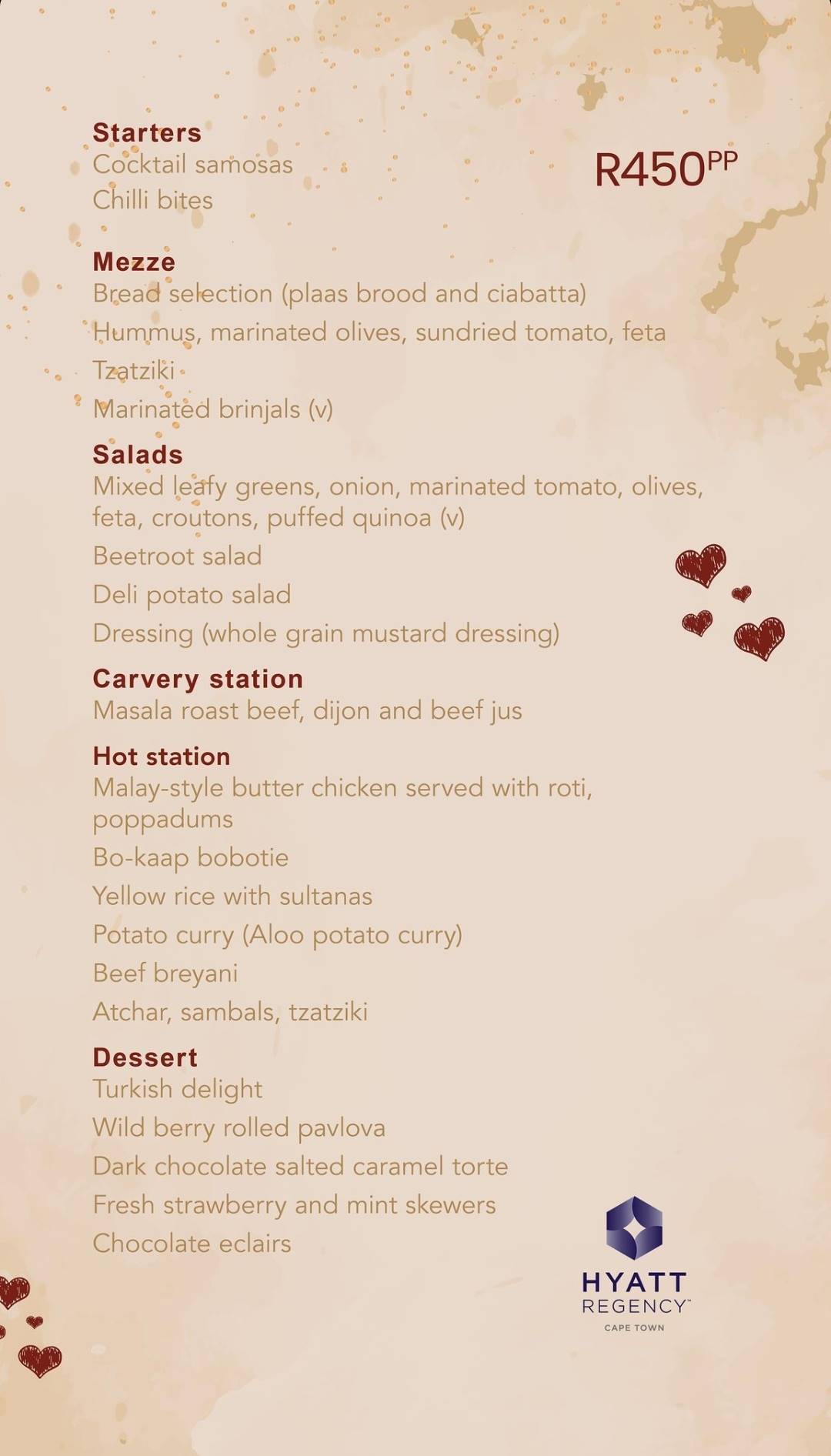 Reservations are recommended to secure your spot for this special evening. Don’t miss the chance to share a beautiful night filled with delicious cuisine and cherished moments at Hyatt Regency Cape Town.