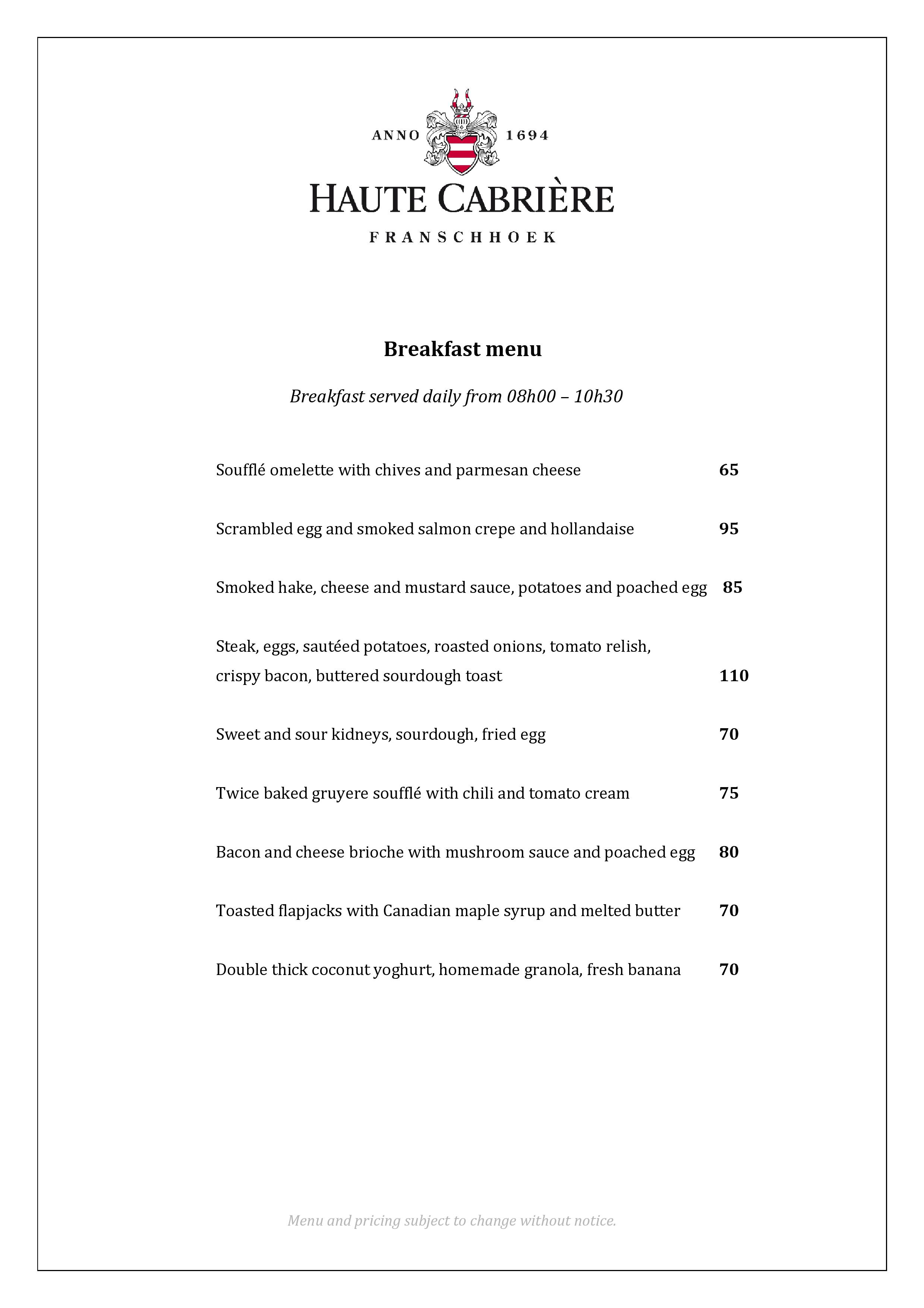Start your day the best way with a selection of breakfasts from Haute Cabriere.