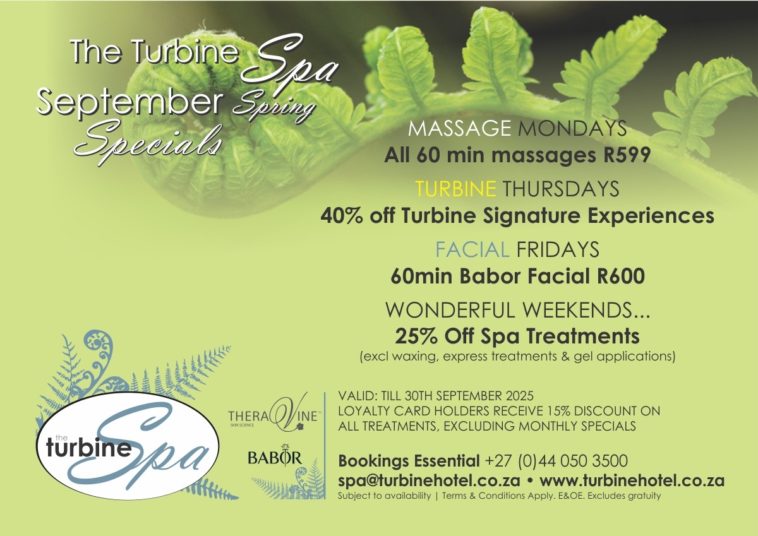 This September, The Turbine Spa has lined up a set of irresistible Spring Specials that make wellness as easy as booking your Knysna getaway. From Massage Mondays to Wonderful Weekends, every day comes with a reason to relax.