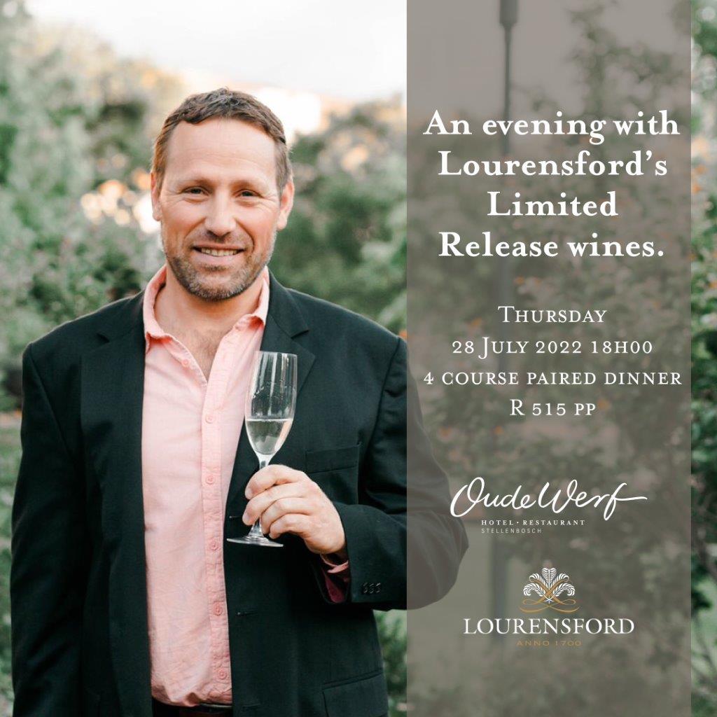 Join Oude Werf Hotel for a wonderful evening of food and wine with Lourensford Cellarmaster, Hannes Nel. This creative 4-course menu, is crafted to beautifully complement their Limited Release wines, which is bound to be an incredible evening of fantastic food and the finest of wines on 28 July from 18h00.