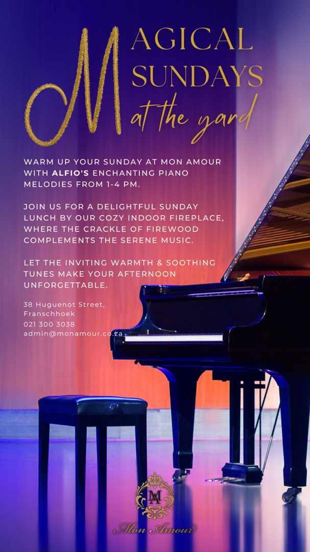 Warm up your Sunday afternoons with a touch of enchantment at Mon Amour, located in the heart of Franschhoek.