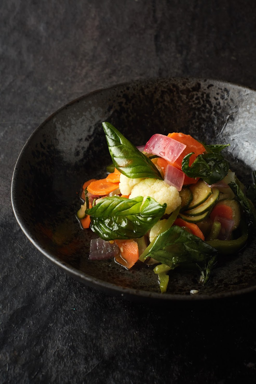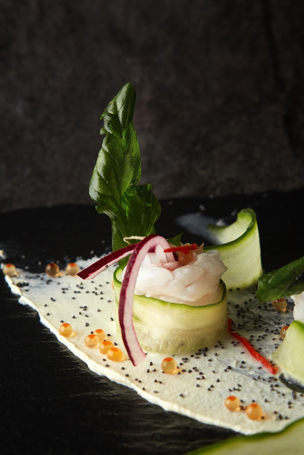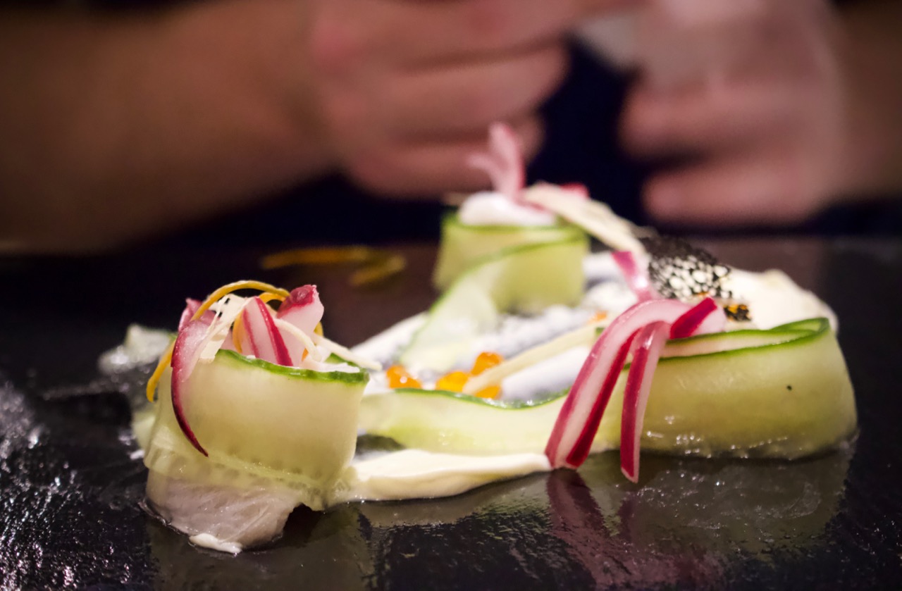 He marinated the hake it in a mix of lemon, ginger and chili before forming an elegant dish of fish rolled in cucumber ribbons with cream cheese and poppy seeds, finished off with micro herbs and fish roe. The dish was a flavourful delight. Fresh, zesty fish with crunch from the cucumber, creaminess from the cheese, and vibrant pops of flavour from the roe.