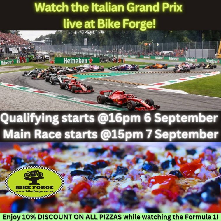 - Then it’s time for the big one: the main race on Sunday, 7 September at 15:00. Expect high speed, nail-biting overtakes, and plenty of drama—the kind only Formula 1 can deliver. But it wouldn’t be a Bike Forge watch party without something tasty to fuel the fans. This time, it’s all about pizza. While the cars fly down the straights, you can tuck into your favourite slice with a 10% discount on all pizzas throughout the race. Pair that with an ice-cold drink and you’ve got yourself the ultimate race-day combo.