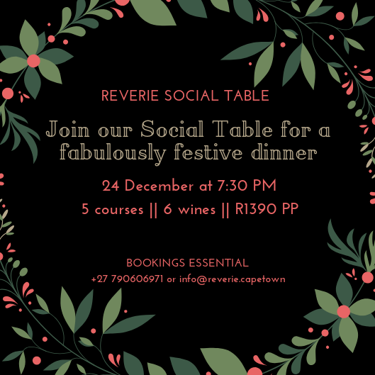 Join Reverie Social Table for their festive Christmas Eve dinner on 24 December at 19:30 – five courses and six wines.