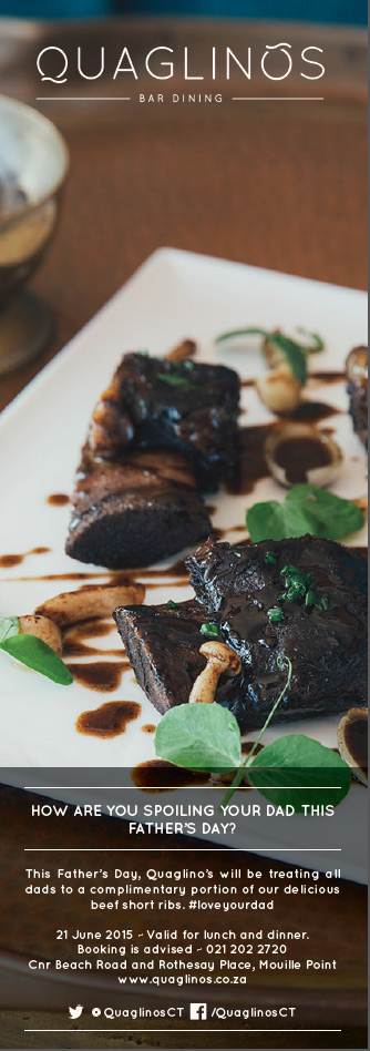 This Father’s Day, Quaglino’s will be treating all dads to a complimentary portion of their delicious beef short ribs. This offer is valid for their lunch and dinner servings.