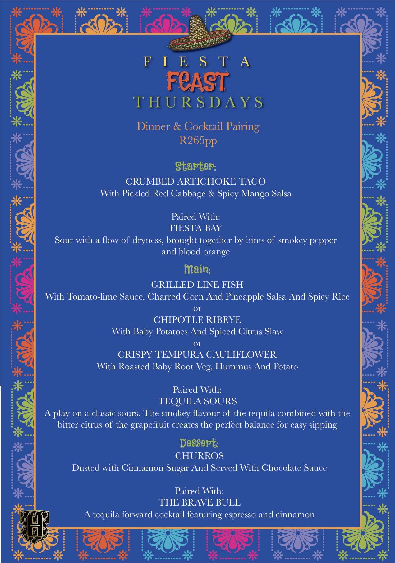 The evening includes three course dinner paired with Tequila cocktails for R265. Enjoy a festive dinner and great vibes.