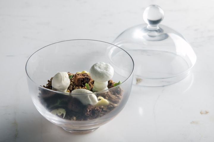 The Dessert course is equally inventive, with smoked chocolate mousse, white ‘mushroom’ and ‘smoke’ evoking a wintry walk through the forests of Table Mountain.