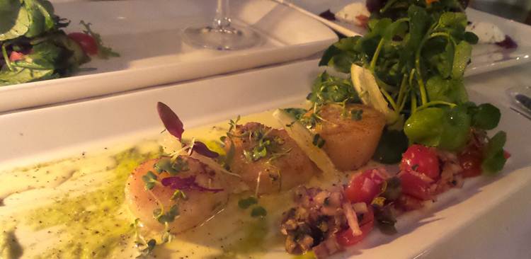 Gently seared scallops, served on a sweet pea puree, with peppery watercress, salty caper and tomato salsa, and a sharp lemon butter sauce (they also normally have crispy pancetta to add that smokiness, but I don’t eat pork). I loved the warmth of the scallops and the creamy butter dressing in contrast to the cold salad and salsa. Actually, I loved everything about it – flawless.
