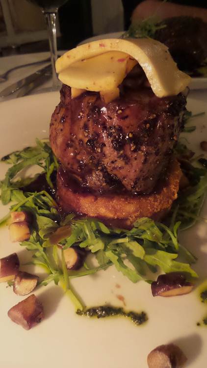 Set on a bed of mizuna, similar to rocket – the beef was tender and moist, with a charred pepper crust. Served with a crisp rosemary, potato and onion rosti; with buttery fried exotic mushrooms; and finally topped with creamy chilli fleur cheese and a red wine jus. The flavours didn’t overwhelm the beautiful piece of meat, but added depth and interest. I didn’t think it could get any better than the lamb – but this incredible dish, was absolutely perfect.