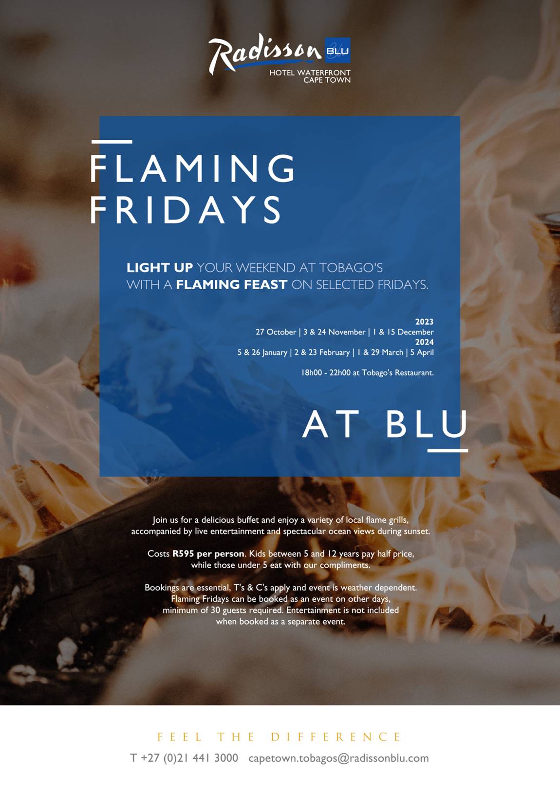 Experience a sizzling start to your weekend at the Radisson Blu Waterfront, Cape Town, with their exciting “Flaming Fridays” held at Tobago’s restaurant.