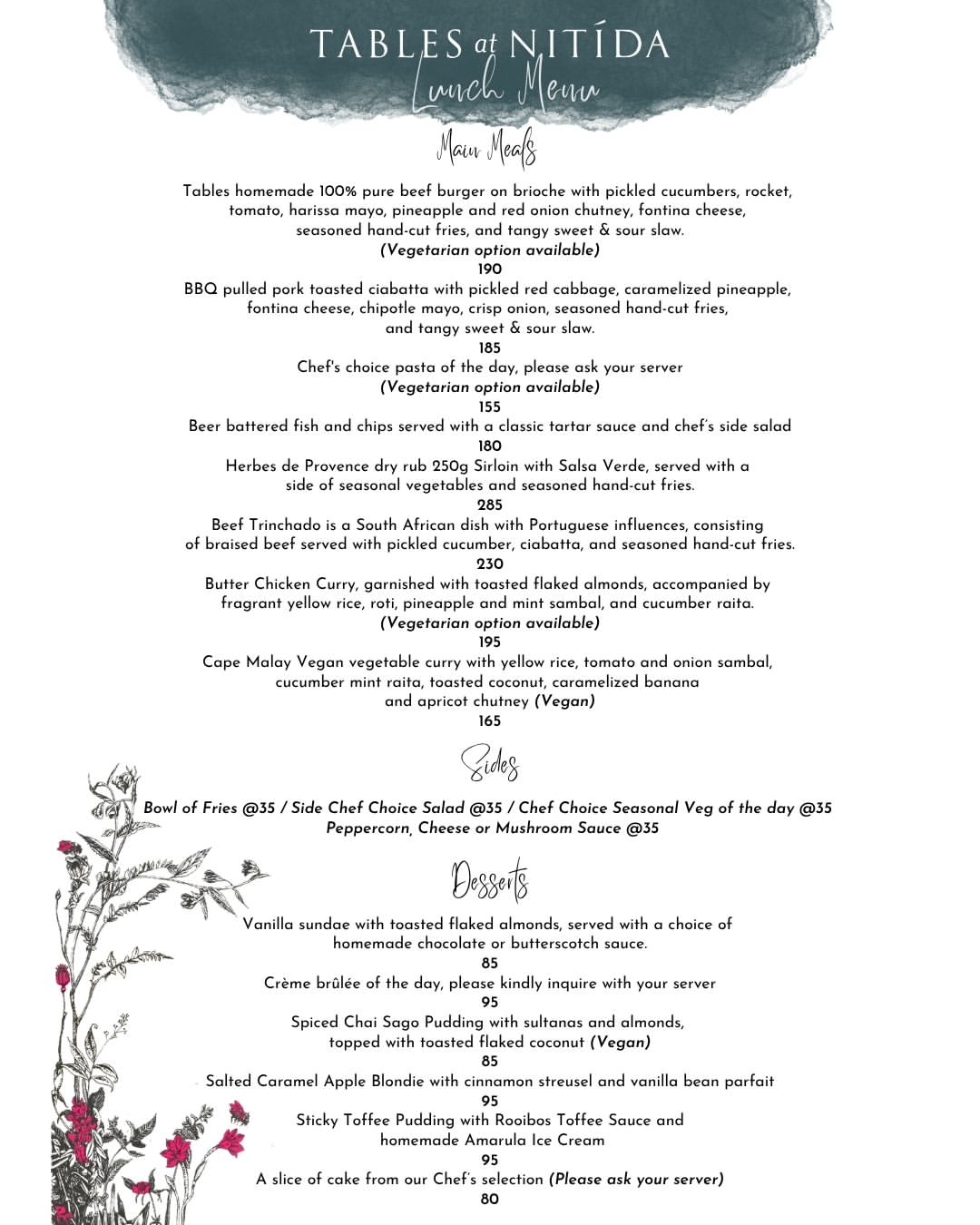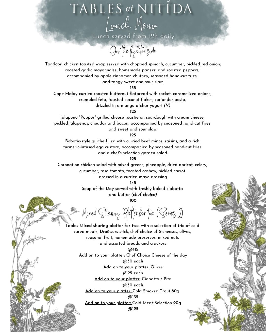 Tables at Nitida doesn’t just serve lunch – it serves an experience. Whether you’re after something light and fresh or full-on comfort food with a view, this is a spot where flavour takes the spotlight and every plate feels thoughtfully done.