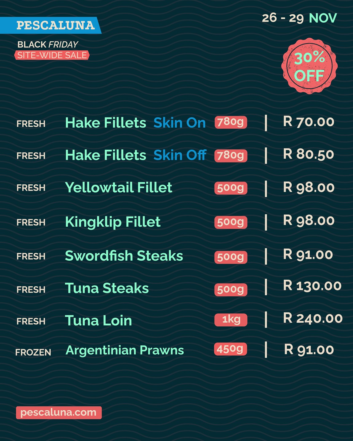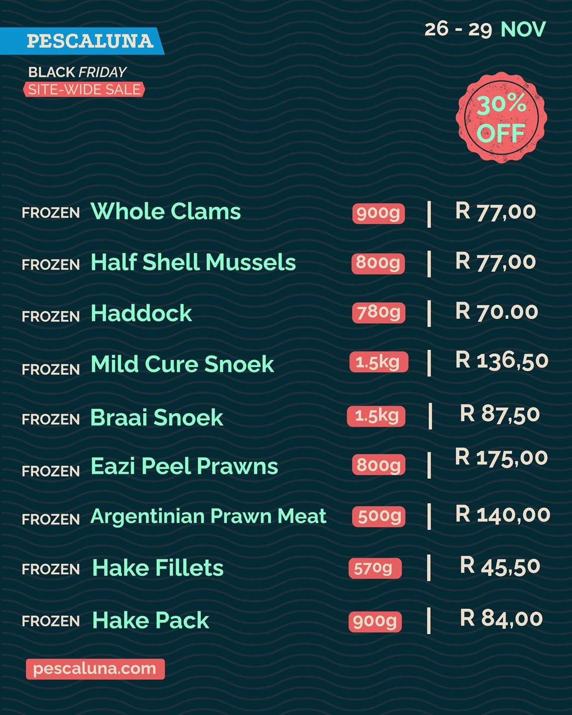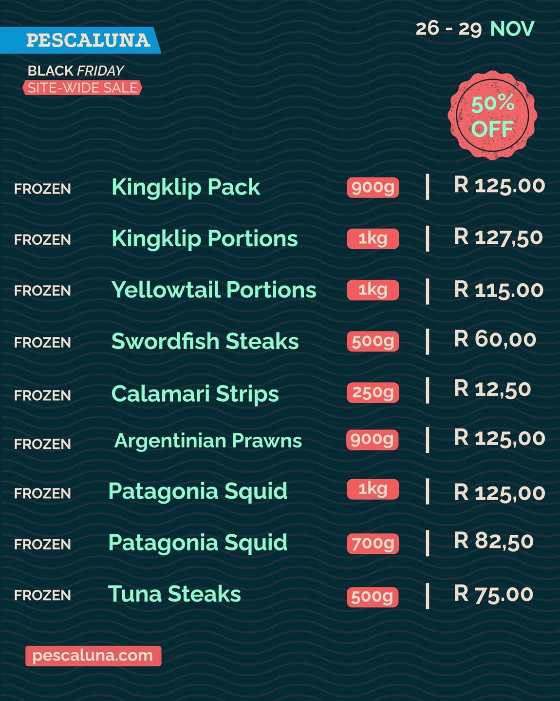 From kingklip, calamari, squid, tuna, clams, mussels and a lot more – there is something for everyone with discounts of up to 50%.