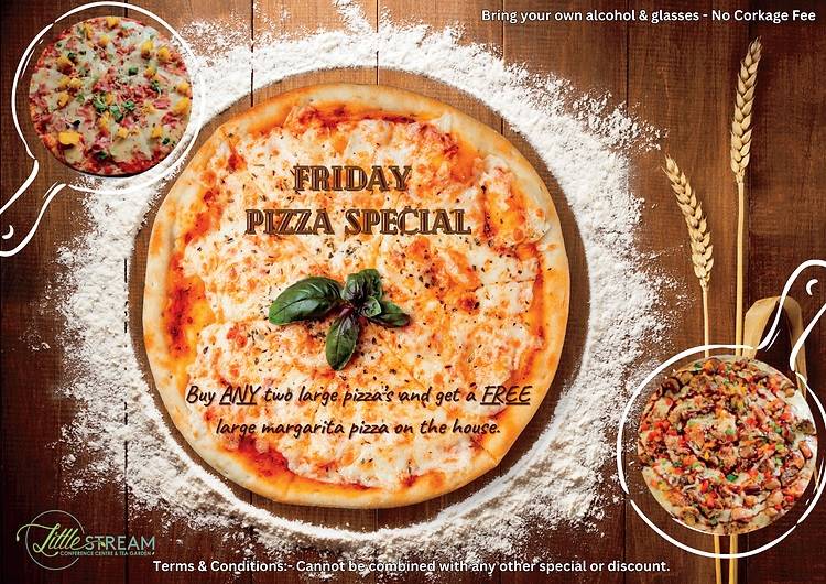 Don’t miss out on this fantastic Friday pizza special at Little Stream; open until 16h30. Enjoy great food in a tranquil, magical environment. Visit Little Stream to take advantage of this pizza special!