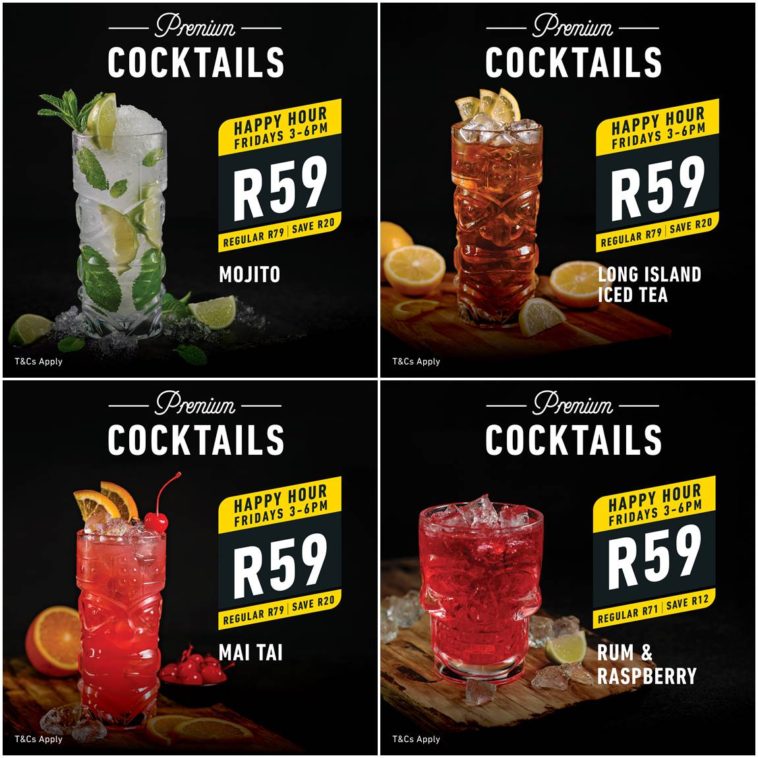 Every Friday from 3 PM to 6 PM, guests can sip on their favourite classics for only R59 each. The line-up is all about variety, flavour, and fun: