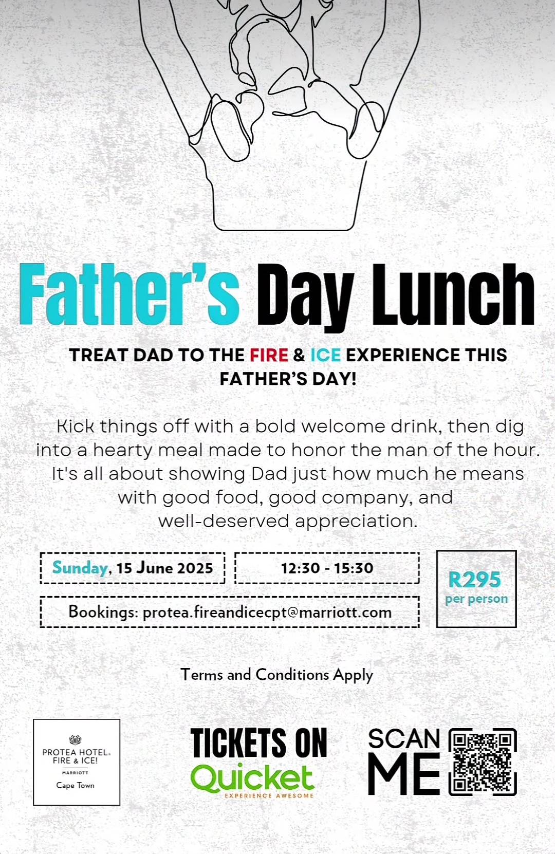 This Father’s Day, Sunday 15 June 2025, the London Road Bistro at Protea Hotel Fire & Ice! by Marriott Cape Town is bringing the flame and the chill with a celebration that’s as bold as the man it honours.