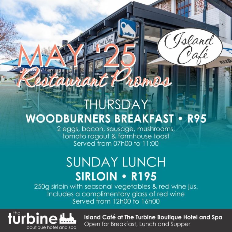 Island Café is nestled inside The Turbine Boutique Hotel & Spa, a spot known for its industrial-chic charm and laid-back luxury. Whether you’re a local looking for your next regular haunt or a visitor wanting a real taste of Knysna hospitality, these weekly promos are reason enough to stop by.