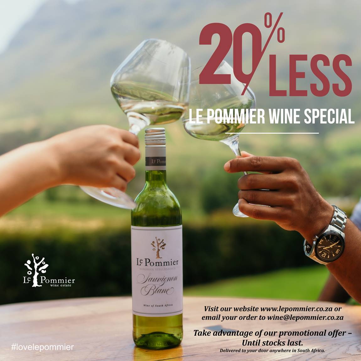 All of their wines are on 20% discount. You can order on the website or via email – wine@lepommier.co.za
