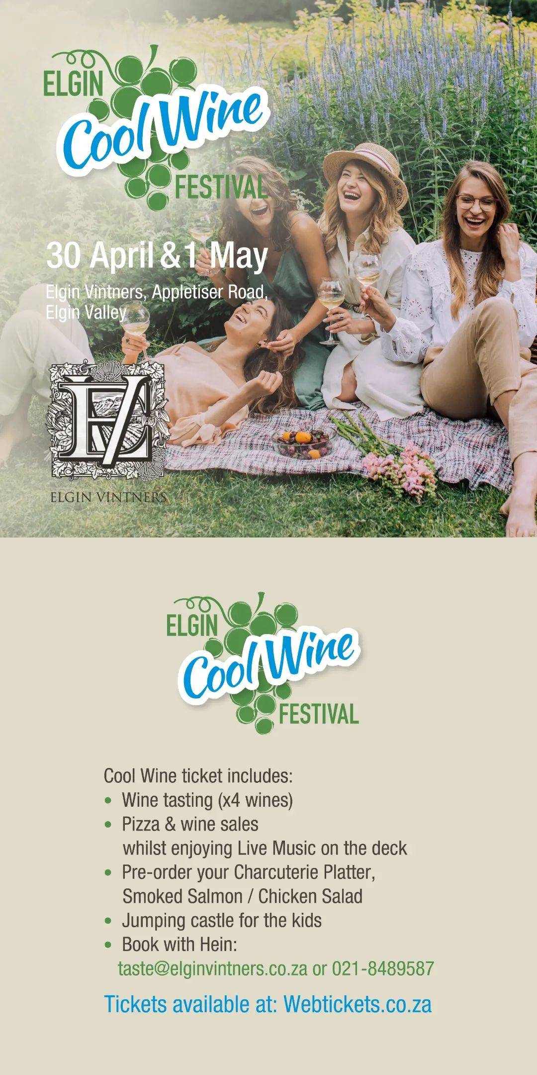 The Cool Wine Festival is back! Elgin Vintners, will be pouring wine from their big bottles for the adults while there will be plenty of kids entertainment. Wood-fired pizzas will be all the hype and live music to entertain the guests will make for a wonderful day out for the entire family.