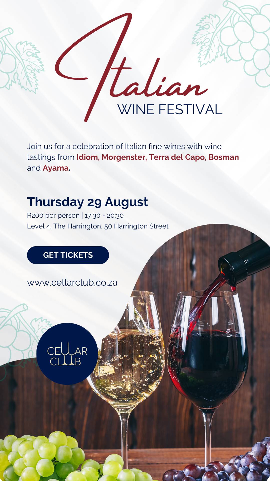 Indulge in an exquisite evening of fine Italian wines at the CellarClub’s Italian Wine Festival on Thursday, 29 August 2024 hosted at The Harrington on Harrington Street.