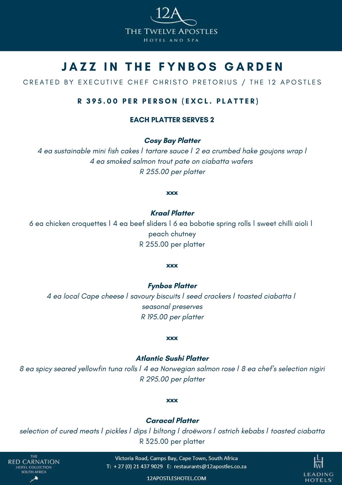 For bookings please email us on restaurants@12apostles.co.za or call 021 437 9000.