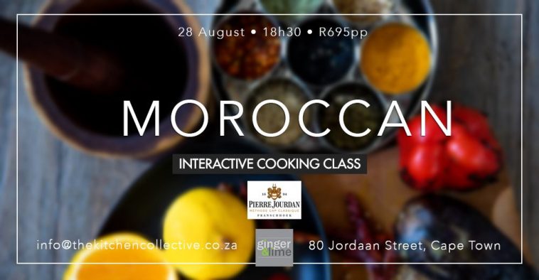 Explore a fusion of flavours in an incredible Moroccan themed course on 28 August from 18:30-21:30. The evening will combine carefully prepared meat dishes with a variety of fresh and seasonal veg. The cooking styles from the Mediterranean and Morocco fuse together beautifully despite contrasts and when paired with Pierre Jourdan Methode Cap Classique wines, it’s out of this world.