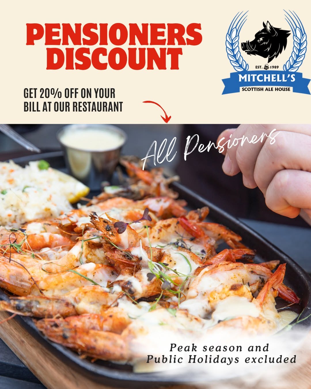 Mitchell’s Ale House is making sure pensioners enjoy their well-earned golden years with golden savings—because great food and good times should never have an age limit!