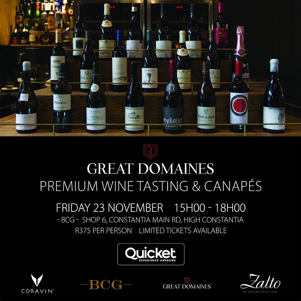 Ticket Price: R375 (Includes 15 wines and canapés) via Quicket