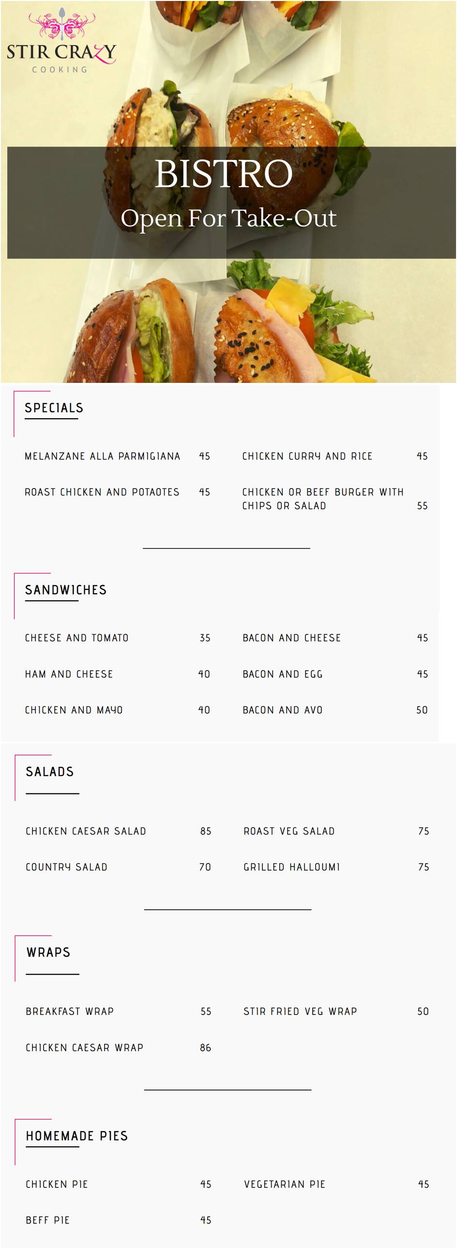 The Stir Crazy Bistro at the V&A Waterfront is open for take-away during lock-down!