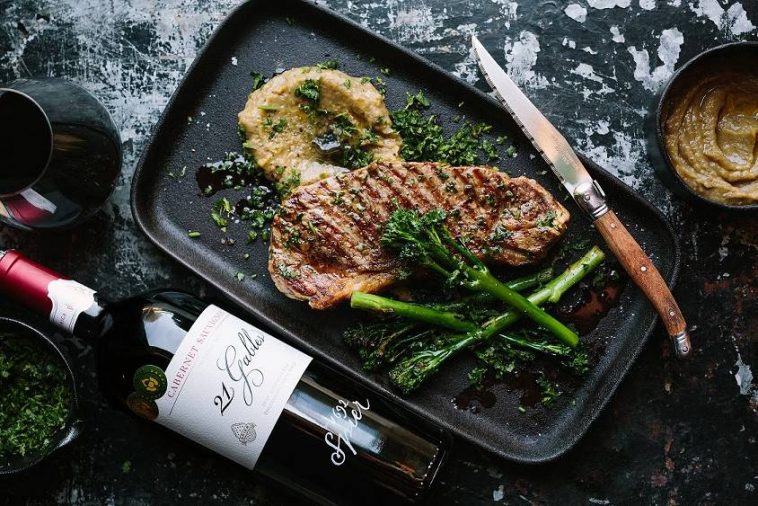 Grilled Sirloin Steak with Gremolata and Aubergine Puree with Spier Wines