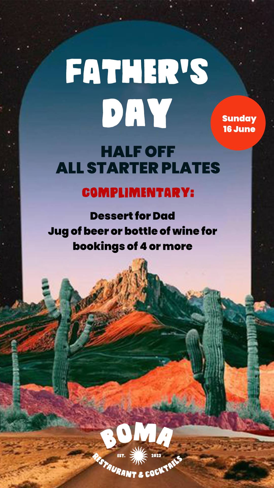 - On Sunday, 16 June, Boma is making the day extra special by offering half off all starter plates, providing an excellent opportunity to indulge in a variety of their delicious appetizers at a fraction of the price.