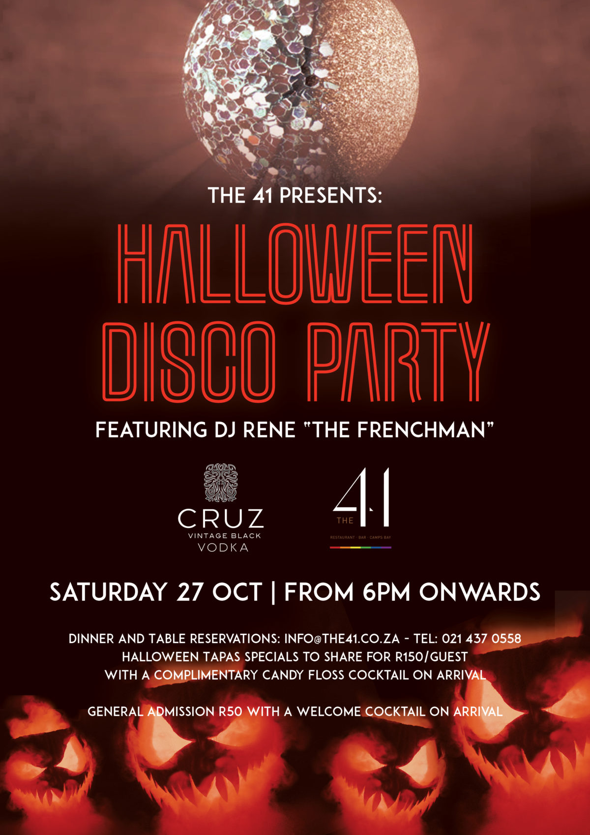 On the 27th of October, The 41 will be transformed into the Twilight Zone. Boogie on down for a night of ghoulish fun with some scary surprises thrown into the mix! The devilish DJ René The French Man will make you rattle your bones on the Dance Floor with a fabulous selection of Old-School Disco!