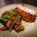- With rosemary butter, laminated truffle potatoes, and charred baby vegetables