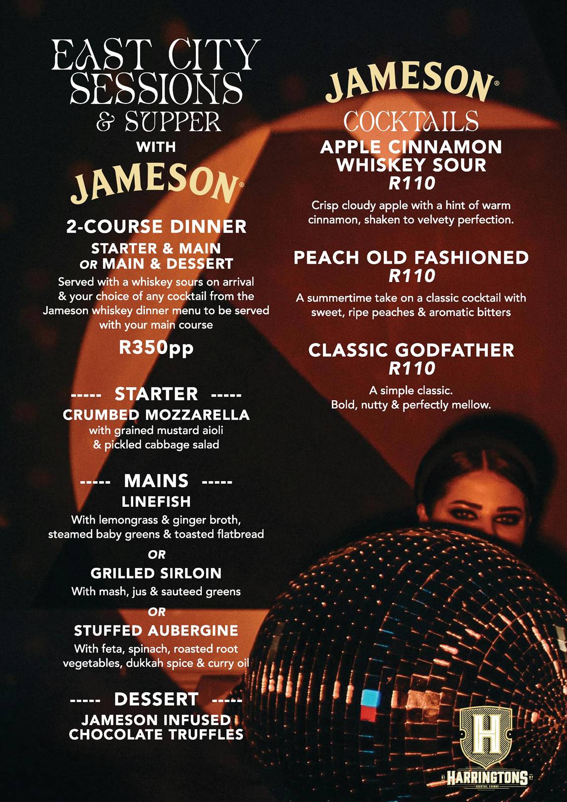 At Harringtons Cocktail Lounge, Thursdays take a more refined turn with East City Sessions & Supper with Jameson—a dinner-led experience that balances comfort, flavour, and a touch of indulgence.
