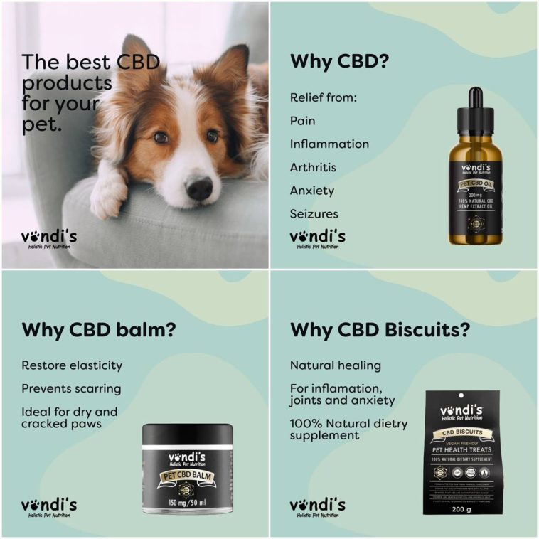 - The Pet CBD Oil provides relief from pain, inflammation, arthritis, anxiety, and even seizures, while the Pet CBD Balm is perfect for restoring elasticity and moisture, preventing scarring, and soothing dry, cracked paws. For an all-natural dietary boost, Vondi’s CBD Biscuits help alleviate inflammation, support joint health, and calm anxiety—making them an ideal daily treat.