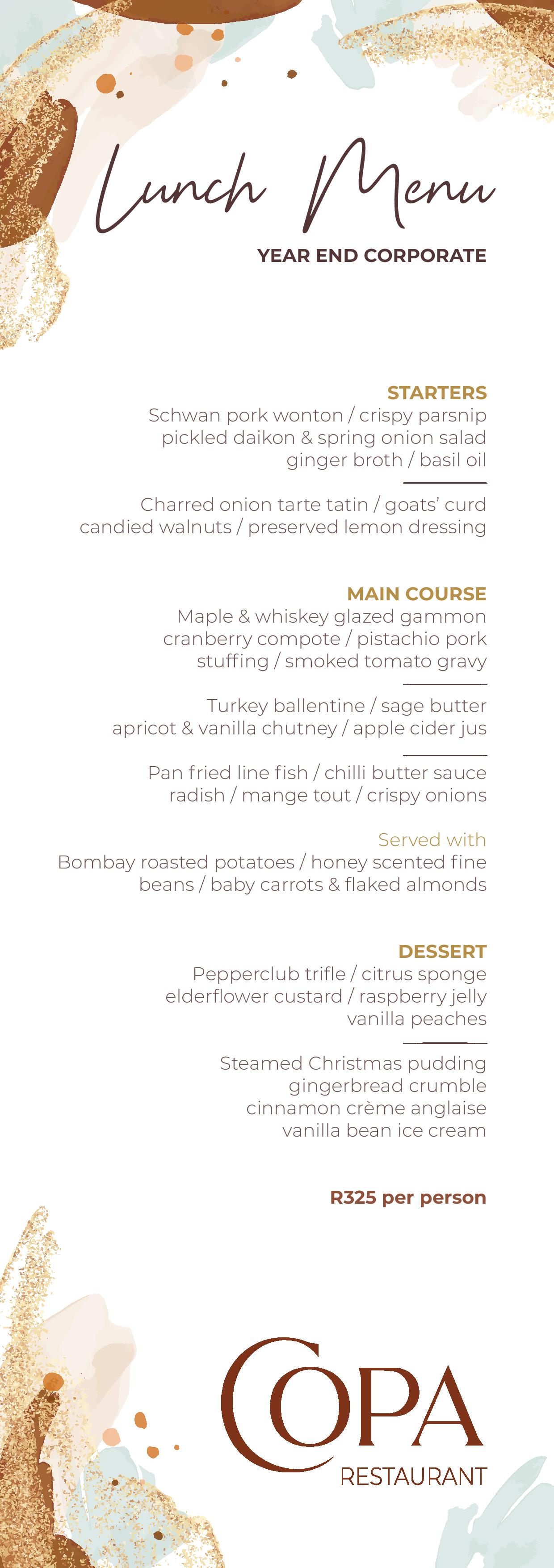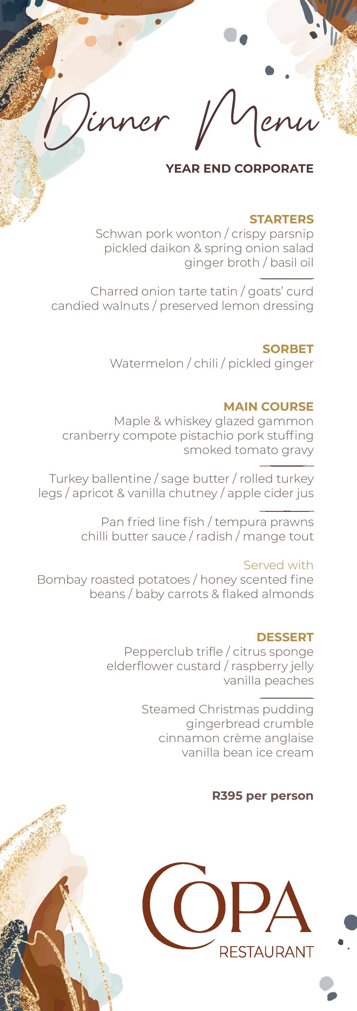 The lunch menu is at R325pp | Dinner Menu at R395pp.