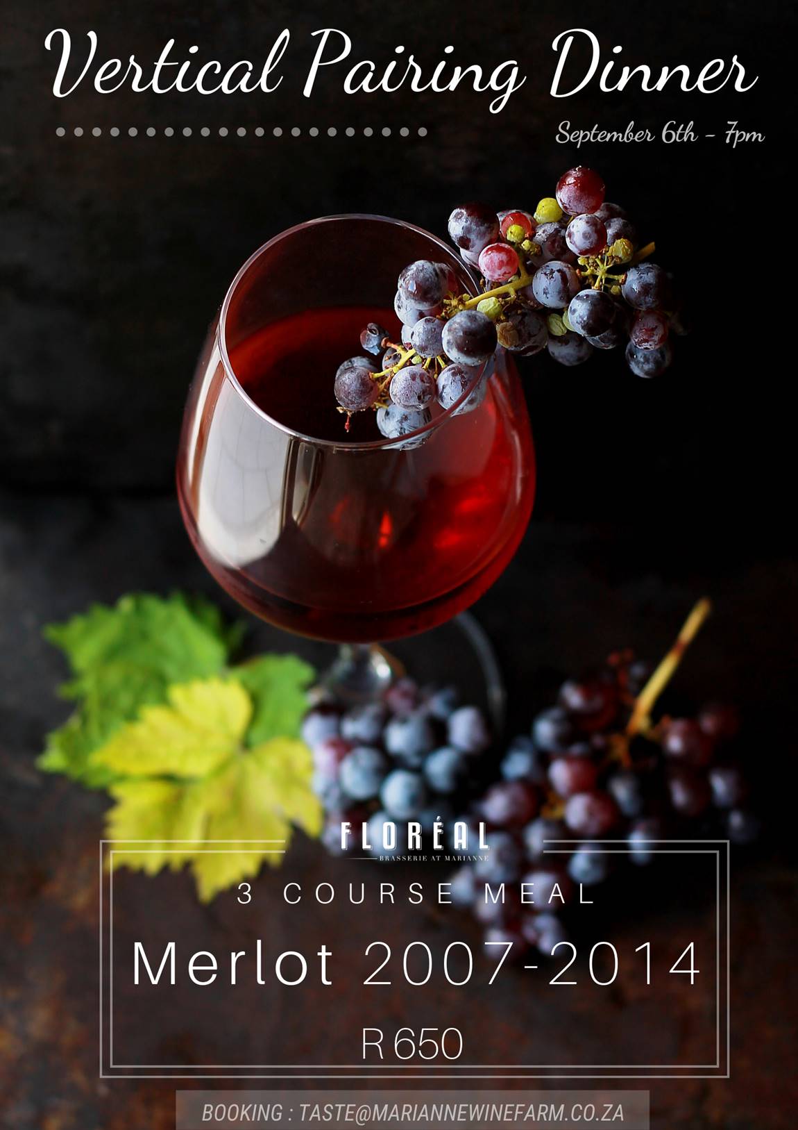 On 6 September, Floreal Brasserie is hosting a Vertical Merlot dinner – a three-course meal paired with a variety of merlot vintages.