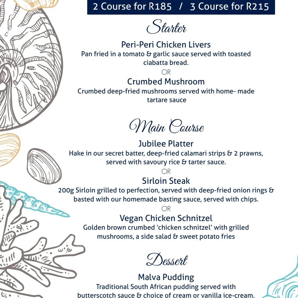 Enjoy a 2 Course meal for R185 / 3 Course for R215