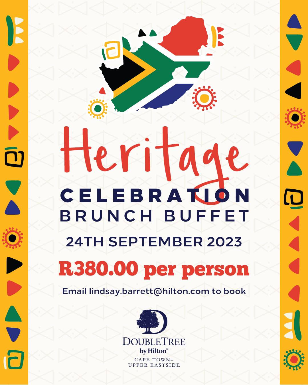- The menu for the Heritage Celebration Brunch Buffet is a true reflection of South Africa’s diverse culinary heritage.[full menu]