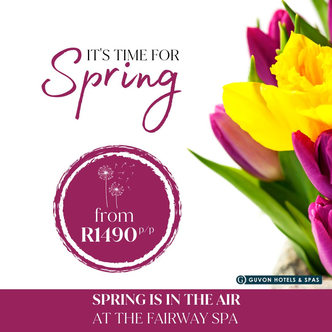 - Step into a realm of serenity with The Fairway Spa’s Spring Special, thoughtfully crafted to whisk you away on a journey of tranquility. Priced from just R 1490 per person, this irresistible package encompasses an array of treatments that will leave you feeling renewed from head to toe.