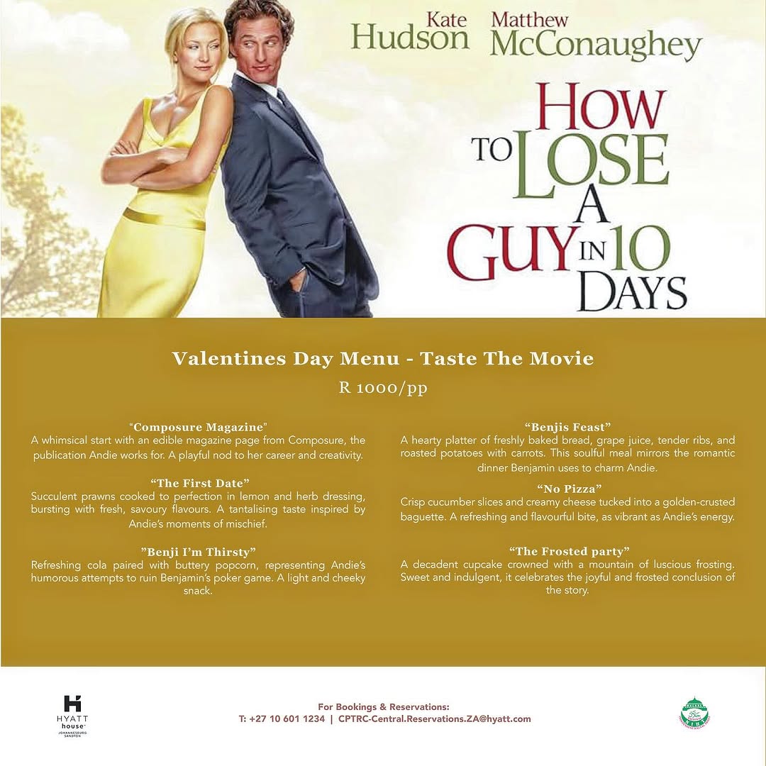 This Valentine’s Day, the Hyatt Regency Sandton invites couples to immerse themselves in a cinematic love story with a unique dining experience inspired by the classic romantic comedy How to Lose a Guy in 10 Days.