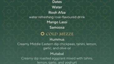 Menus reflect abundance and familiarity, with dates and refreshments served at sunset, cold mezze such as hummus and mutabbal, build your own garden salads and comforting hot mezze. Suhoor offerings balance nourishment and ease, featuring seasonal fruit, yoghurt, cereals, pastries, savoury sandwiches and hearty vegetarian options.